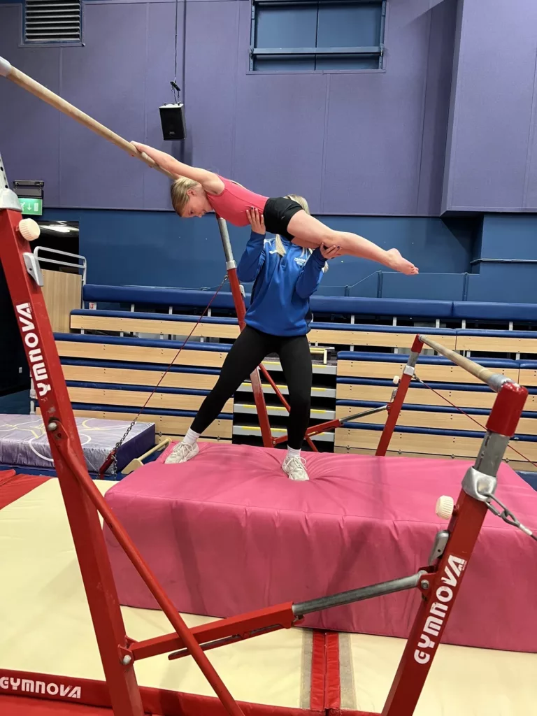 Our class ratio is nine children to one coach, who divides the class into three groups of three to work on skills related to that week’s apparatus. This allows the children to maximise their time practising and not waiting for turns. As an integral part of our coaching ethos, extra help is given to those who need it.
