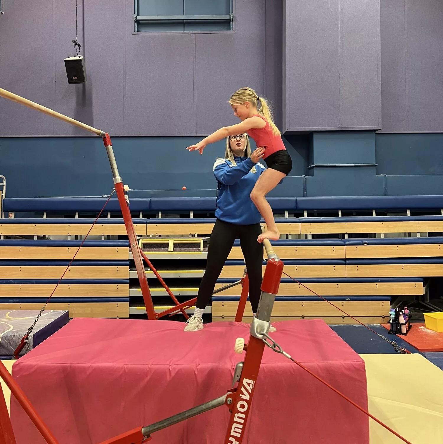 We start with a pulse-raising warm up on the floor area – all designed to incorporate strength, flexibility and mobility exercises essential for gymnastic progression – and then focus on two pieces of apparatus for the session.