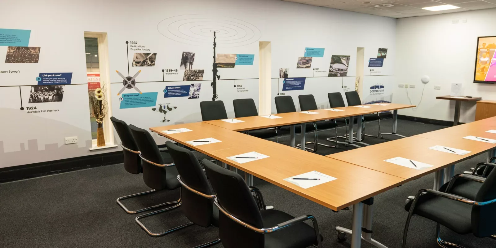 Our diverse range of meeting spaces, professional furniture, catering options, historical wall mural and interactive technology makes Bolton Arena the perfect facility for your conference needs!