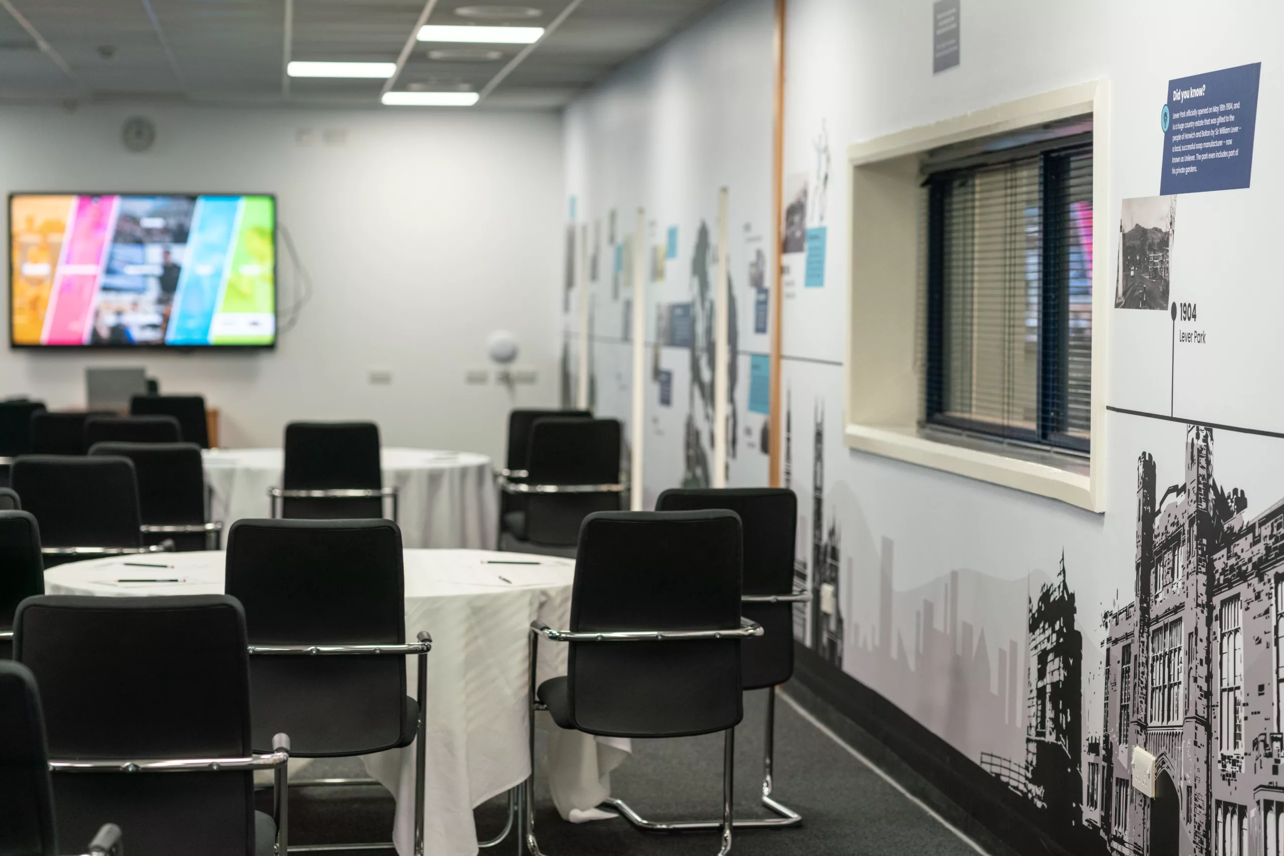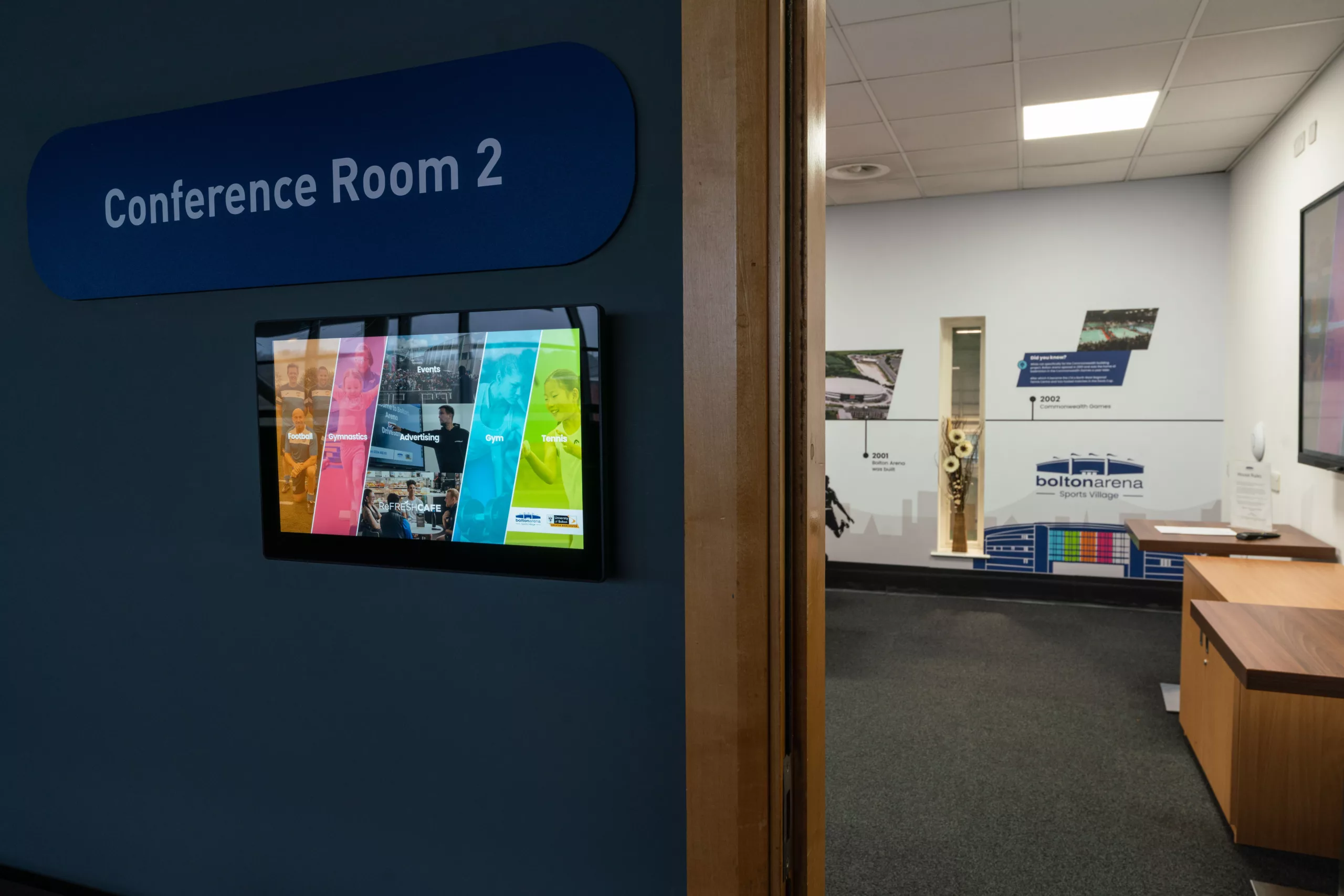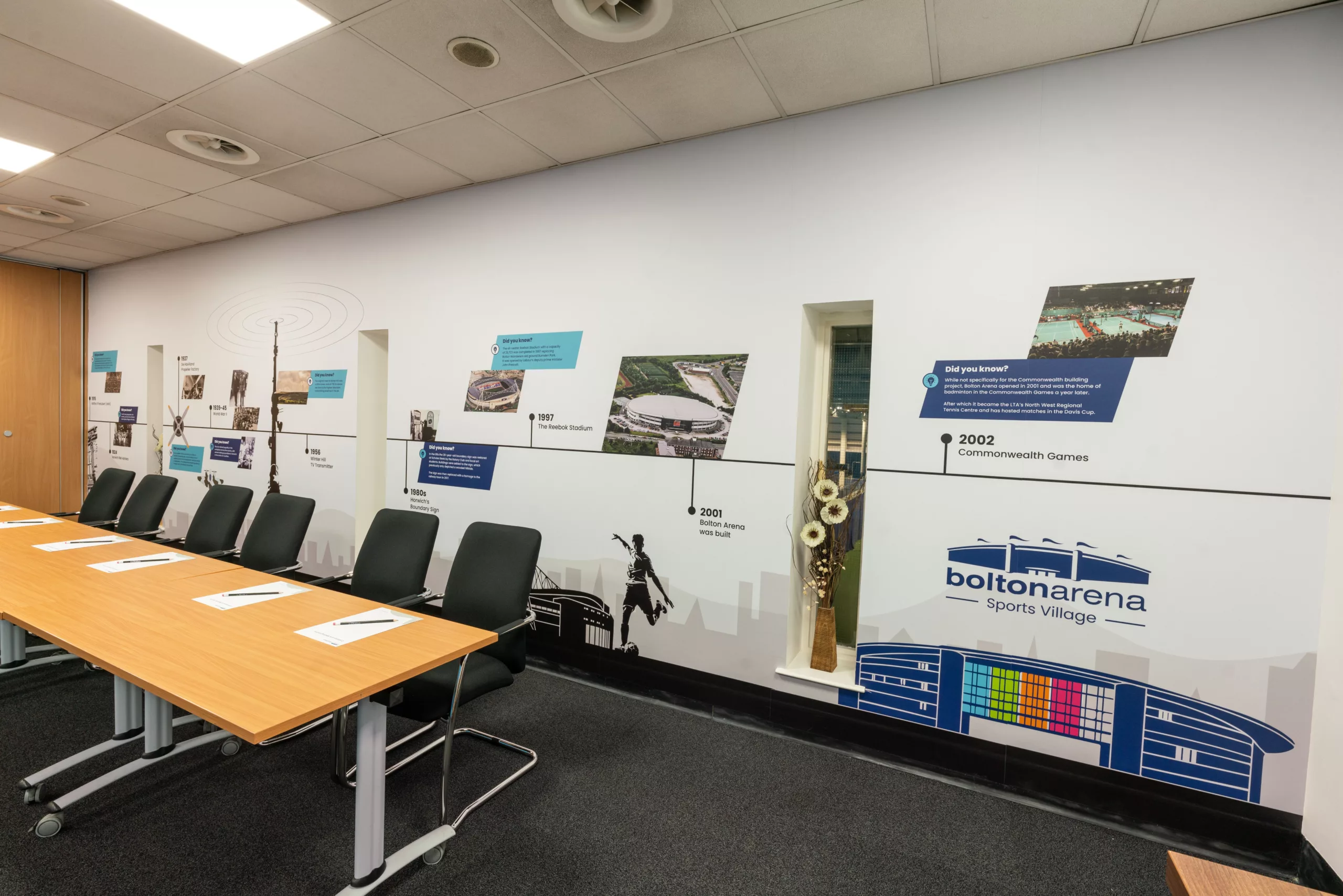 Lee Wood, Head of Commercial at Bolton Arena Sports Village, explains: “Our aim was to do something unique to elevate our conferencing facilities to the next level. When the conferencing space is opened up, it provides a 78ft wall that we felt could be turned into something distinctive and engaging.